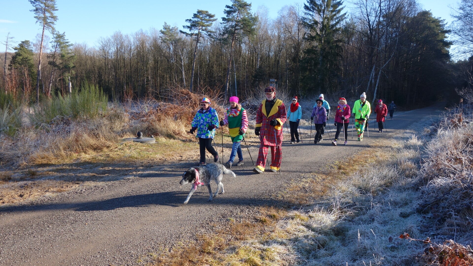 Traditionell sind wir an Rosenmontag mehr oder weniger kostümiert durch den Lohmarer Wald gewalkt. Rund 20 Teilnehmerinnen und Teilnehmer konnten sich anschließend mit Kaffee, Tee, Sekt oder anderen alkoholfreien Getränken und verschiedenen Berlinern, Krapfen oder Herzhaftem stärken. Ein Dank an die Spenderinnen und Spender.
